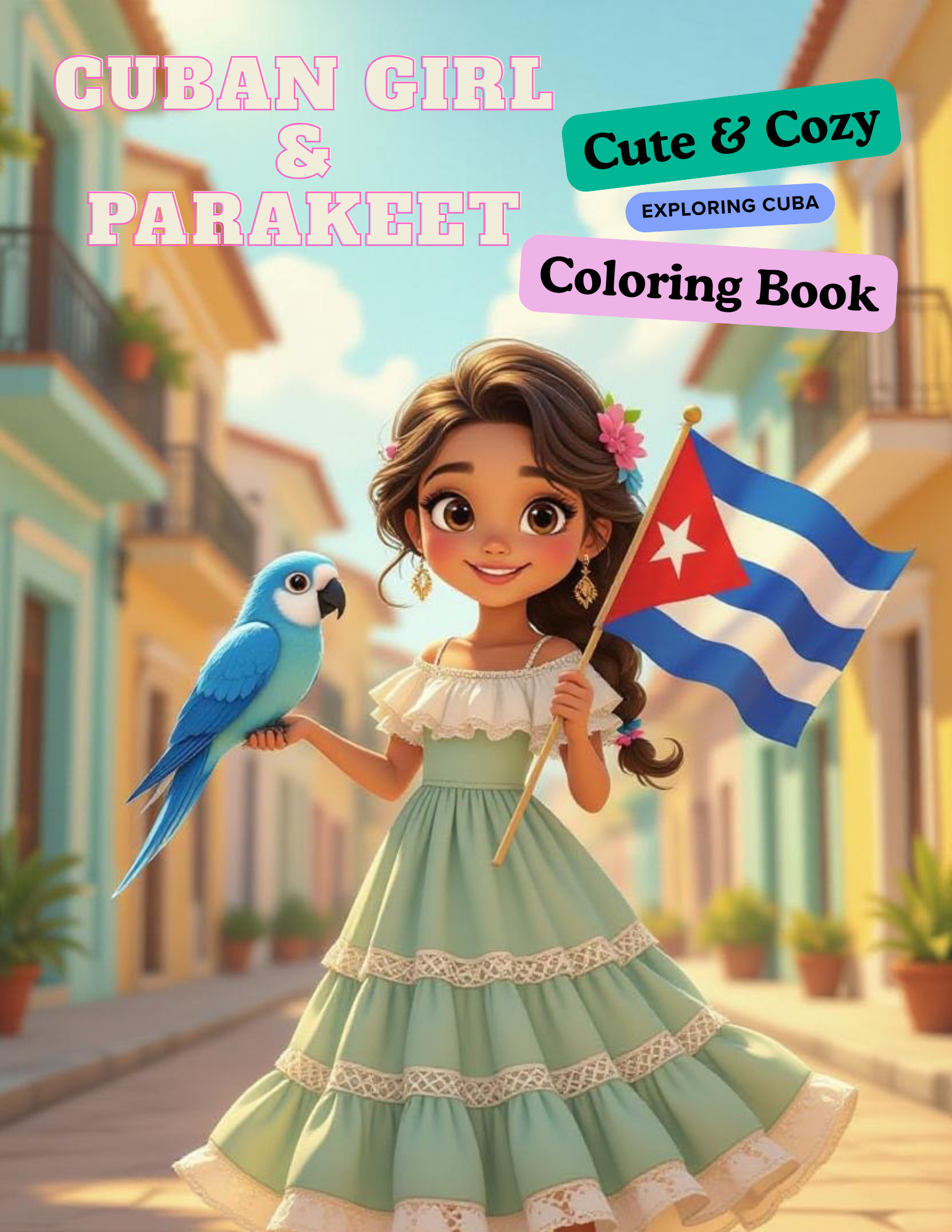 Cuban Girl and Parakeet Coloring Book. With one sided cardstock coloring page for mixed media coloring.